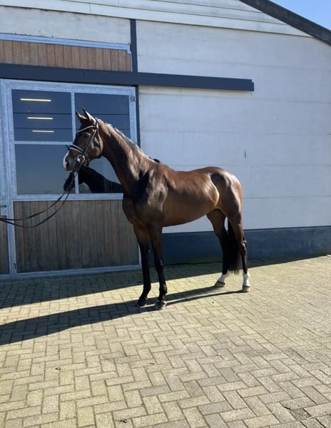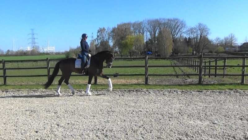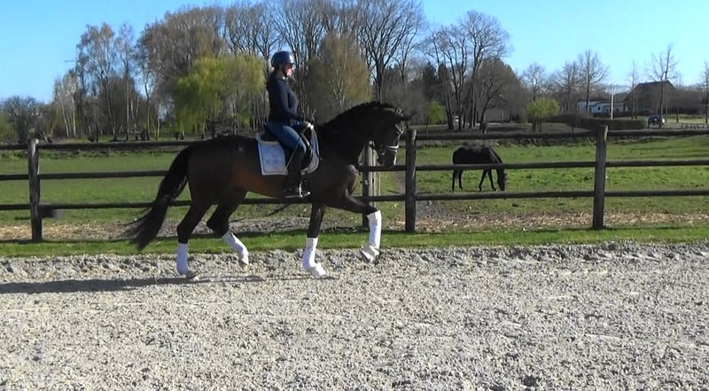 Talentierte 4 jr Wallach. Dunkelbraun, ca. 1.69/ 1.70m Oldenburg. Hermes x Vivaldi x Sir Donnerhall ( Gesina!) Happyness hat immer spass zum arbeiten. Ist auf dressurpferde A niveau ausgebildet und ist schon einmal Turnier gegangen. Der ist leicht im Genick und hat genug 'go' ohne dazu heiss zu werden. Der hat kein unarten im Stall. Hat ein gute tuv, incl Rucken und Genick. Preisvorstellung: € 20.000 + mwst ( 21%). Video: https://www.youtube.com/watch?v=-6ePH54r6XM Pferd steht in Kinrooi ( B), ca. 50 km von Aachen und Monchengladbach. Tel: 0031683948093