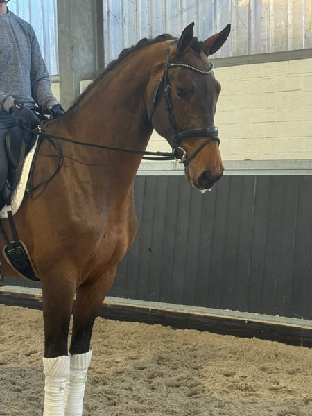 Elegant Oldenburger Gelding, born in 2022, seeking a rider. With a height of 170 cm, this dark bay young sporthorse presents himself as a promising talent for dressage. His impressive stature, combined with a harmonious and well-rounded basic training, makes him an ideal partner for ambitious riders who value quality and future potential. The young gelding impresses with his attentive and friendly nature, as well as his well-established foundation in training. He already shows initial aptitude in the dressage arena, is well accustomed to the rider, and possesses a solid base for further development. Thanks to his pedigree, he exhibits the typical qualities of his bloodline – elasticity, movement quality, and willingness to learn. This promising dressage young horse is well suited for development in the young rider or amateur classes, with the perspective of progressing to higher levels. He is healthy, well cared for, and eager to take on a new challenge in a dedicated home. Please feel free to contact us for more information or to arrange a personal impression of this promising Oldenburg prospect.