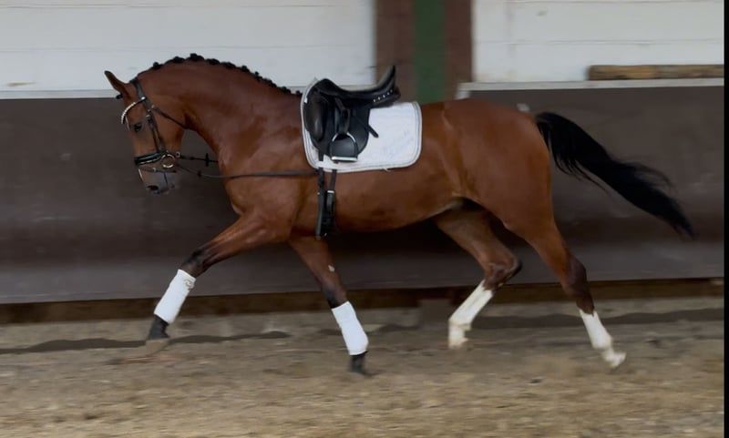 A beautiful likeness of the maternal grandfather Zoom! A colorful, expressive, and athletic stylish 2.5-year-old youngster, who is also double-bred through both sire and dam and possesses an absolutely dream character! Born in December 2022, he officially belongs to the 2023 foal crop and is now slowly being started under saddle. He is already accustomed to rider weight at walk/trot/canter, and is super well-behaved and light to ride! He impresses daily with his teachable and balanced nature. Extremely kind and uncomplicated in handling. He is descended from our licensing champion, BuCha finalist, and HLP winner "Cafe au lait," who has been drawing attention for some time with his incredibly successful offspring in dressage and show jumping. One of the few sires who can boast numerous successful offspring in both disciplines up to the advanced level! For example, "Cafe's Casimir" (Cafe au lait x Calido x Grannus) was the celebrated top price at the Oldenburg Elite Auction, is already a series winner in young dressage horses M at a young age, and at 7 years old is again a series winner in his first S dressage tests! He is now successful in international Intermediaire I. The mare Kasselmann's Cafe's Caletta (Cafe au lait x Calato) is already successful in S** dressage and international Grand Prix. Cafe's Matts (Cafe au lait x Don Frederico) was the second most expensive dressage horse at the Oldenburg Summer Mixed Sales. Other young horses from jumping-focused dams have already been placed multiple times in dressage tests A to M and are remarkably athletic and clear-minded. There is no doubt that the Cafe au lait offspring excel in show jumping up to the advanced level, such as from our breeding: Cafe's Champus: licensed, vice world champion of young horses, now in breeding in Russia Cafe Junior: licensed, internationally successful in Saudi Arabia Cafe's Columbo: licensed and sport-successful in France Cafe's Don Rubin: licensed, at 4 years old the youngest horse to win bronze at the Dobrocker Deister Championship, multiple winner in show jumping L and qualified for BuCha. Cafe au lait himself was a Bundeschampionat finalist under Philipp Weishaupt and has been successful up to S*** show jumping, but is also equipped with three spectacular gaits and has been trained to S level in dressage. Stationed at Paul Schockemöhle, he has already sired numerous internationally successful show jumpers, including "Royce" (Cafe au lait x Grandilot), successful in the FEI CSI5* $500,000 Rolex Grand Prix Wellington. Our foals receive daily mineral feed and foal starter, regular EQUISTRO Haemolytan and Ipaligo Foal, deworming, and farrier care are of course also standard. The mares receive special mare feed, juice feed, linseed oil, and hay ad libitum throughout the entire pregnancy. Thus, our breeding mares and their offspring are always well cared for and in top health! Trade-in of a suitable breeding mare is possible. Further foals and young horses from our own breeding are available upon request. Some can be found in other listings. We have about 20-25 Cafe au lait foals each year. There are also always a few pregnant breeding mares for sale. Video inquiries, etc., are only possible in advance via WhatsApp! Cafe's Zazoom already has a current very good radiographic TÜV.