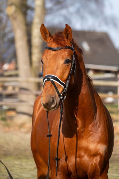 "Final Countdown" ist ein imposanter Wallach, der sich im Viereck aber auch über dem Sprung zu präsentieren weiß. Letztes Jahr wurde er schonend angeritten und ist erst seit Anfang des Jahres regelmäßig unter dem Sattel. Er ist ein feinfühliges Pferd, welches die Abwechslung in der täglichen Arbeit, aber auch eine entspannte Runde im Gelände genießt!