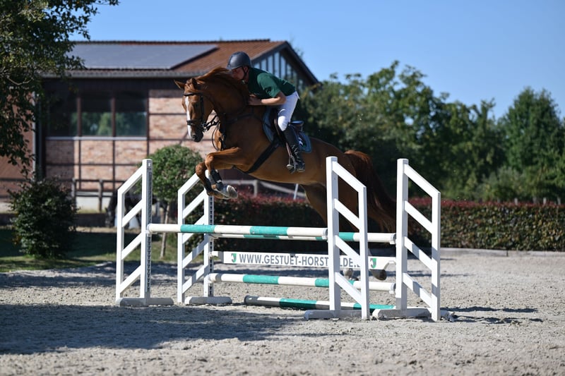 5-year-old Westphalian gelding by Conthargos out of a Balou de Rouet dam Name: Conthargo R Breed: Westphalian Gender: Gelding Year of Birth: 2020 Height: approximately 16.1 hh Color: Chestnut Sire: Conthargos Dam Sire: Balou de Rouet Description: This 5-year-old Westphalian gelding by Conthargos out of a Balou de Rouet dam is the kind of horse any rider would dream of. With his impressive temperament, excellent riding qualities, and sporting potential that leaves nothing to be desired, this young horse brings great joy every day. He impresses with his willingness to learn, calm demeanor, and natural confidence in work. In his first competition season in 2025, he already won several class A show jumping tests and achieved numerous placings. He already shows himself as a true talent with significant potential for the years to come. Character: Very well-behaved and cooperative, suitable for ambitious riders and young talents Riding qualities: Sensitive, responsive to aids, with great potential for show jumping Achievements: Multiple wins and placings in class A show jumping tests Sporting potential: Excellent development in jumping, promising prospects for the future