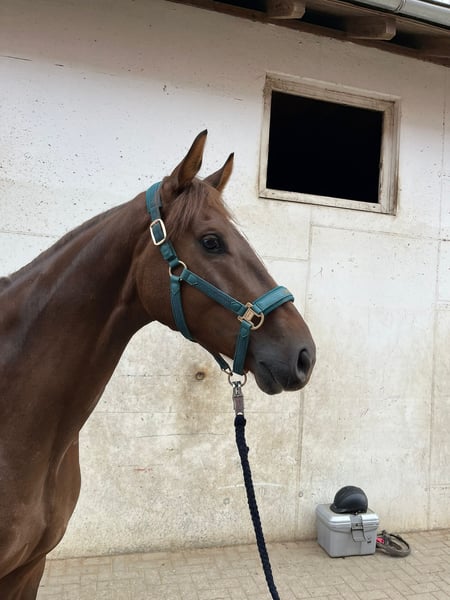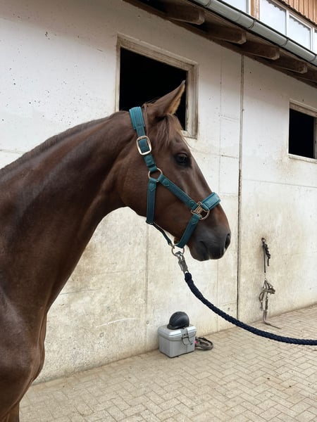 À vendre, un charmant hongre Oldenburger issu des meilleures lignées (So Unique x Follow Me). Né le 15.05.2020, ce bai foncé ne se distingue pas seulement par son apparence exceptionnelle, mais surtout par son caractère simple et amical. Il se montre extrêmement désireux d'apprendre, motivé et facile à manipuler au quotidien – que ce soit pour le pansage, la conduite ou l'entraînement. Grâce à sa posture de tête claire et à son talent, il présente les meilleures conditions pour un avenir réussi dans le saut d'obstacles. Grâce à son excellente lignée, il réunit dans son pedigree des étalons modernes réputés pour leur montabilité tels que Sezuan, Zack, Donnerhall et Fürstenball – un véritable gage de qualité pour la force de mouvement et la disposition au travail. ✅ Hongre Oldenburger ✅ Bai foncé, né en 2020 ✅ Facile à manipuler, amical, sans complications ✅ Très désireux d'apprendre et talentueux Un cheval prometteur pour les cavaliers ambitieux qui attachent de l'importance au caractère et aux perspectives.