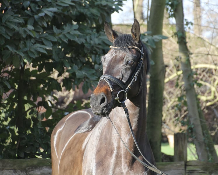 Dieser überaus charismatische und bildschöne Wallach präsentiert sich als wahrer Gentleman. Im Umgang ein echter Schmusebär und unter dem Reiter mit klarem Kopf, drei guten Grundgangarten und hohen Rittigkeitswerten ausgestattet, bringt er beste Voraussetzungen als vielversprechendes Nachwuchspferd mit. Seine ausgeprägte Lernbereitschaft und sein kooperatives Wesen machen ihn zu einem angenehmen Partner, der Freude an der gemeinsamen Ausbildung verspricht. Dieser Wallach ist bei uns geboren und in der Herde aufgewachsen. Er wurde im letzten Jahr schonend angeritten und ist nun bereit sich mit seinem neuen Besitzer weiterzuentwickeln. Seine Mutter kommt aus dem bewährten Oldenburger Stutenstamm der Neastate. Sie ist die direkte Vollschwester der S-Dressur erfolgreichen Nea's Astina. Er kann nach Absprache gerne jederzeit bei uns angeschaut und zur Probe geritten werden. Ein Video ist auf Anfrage verfügbar.