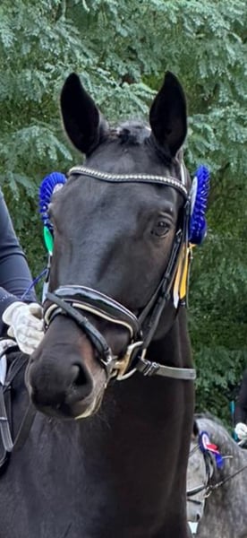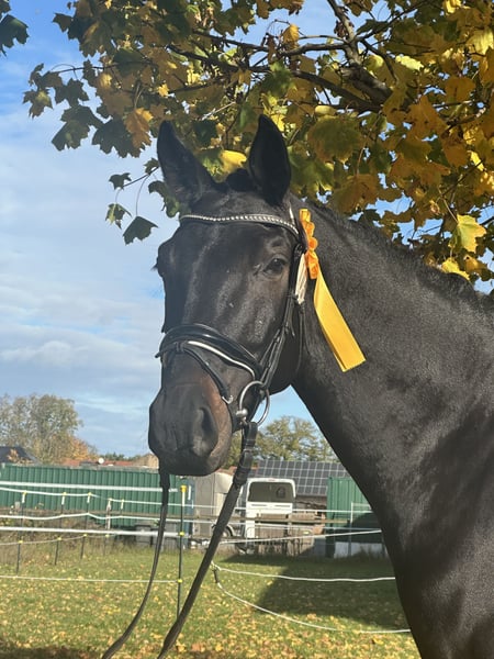 Anyone who wants to enjoy riding every day shouldn't miss out on our handsome guy. He has been gently trained by a young rider. Together, they have already competed in two competitions and placed twice. After a successful chip operation at the age of four, he had a break until the spring of this year and has already developed significantly in this short time. Very people-oriented and friendly, I am looking for a nice home for him. He has been with me since he was a foal. Quality for higher tasks is definitely present, but he is also the right partner for a leisure rider.