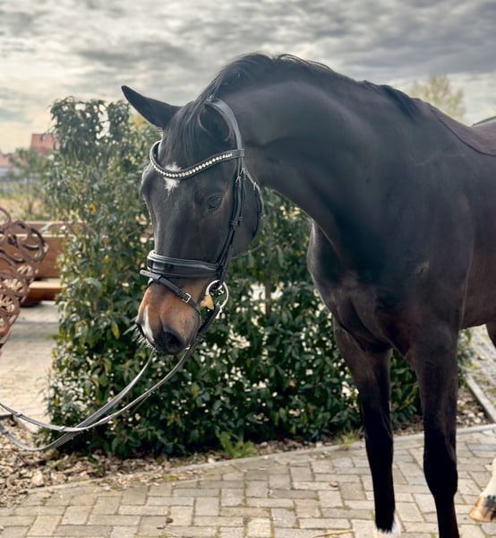 Rocket ist ein 5-jähriger Wallach, der seinem Namen alle Ehre macht – mit Ausstrahlung, Qualität und ganz viel Charme. Mit seinen ca. 1,73 m Stockmaß und seiner dunkelbraunen Jacke ist er ein echter Hingucker. Abstammend von Incognito x San Amour bringt er beste Voraussetzungen für den Sport mit. Seit seinem Fohlenalter ist Rocket in meiner Hand und hat sich zu einem unglaublich liebenswerten, verschmusten und menschenbezogenen Partner entwickelt. Er wurde bewusst schonend ausgebildet und erst 4-jährig angeritten, da er die Zeit bekommen sollte, in Ruhe zu wachsen und sich zu entwickeln. Nach den ersten Erfahrungen unter dem Sattel durfte er den Sommer auf der Weide verbringen, um alles Gelernte zu verarbeiten. Aktuell steht Rocket seit 5 Monaten im professionellen Beritt und zeigt sich dort sehr lernwillig und motiviert. Er kann vor Ort ausprobiert werden, Videos sowie ein aktueller TÜV liegen vor. Rocket ist sensibel und hat ein kleines „Hasenherz“, weshalb er einen sicheren und einfühlsamen Reiter braucht. Mit den richtigen Menschen an seiner Seite bringt er jedoch alles mit, um im großen Viereck zu glänzen. Er ist kein Anfängerpferd. Ich wünsche mir für ihn ein liebevolles Zuhause mit Familienanschluss, wo er weiterhin gefördert und geschätzt wird.