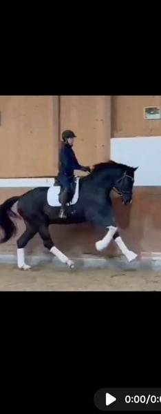 For sale is an impressive Oldenburg dark bay gelding (born 2021) standing at 17.4 hh, captivating with his modern appearance, outstanding movement quality, and great potential for development. This talented young dressage prospect is at a solid training level (Dressage Horse L) and has already achieved successful placings in young horse competitions. He consistently demonstrates willingness to perform, eagerness to learn, and nerves of steel – an ideal sport partner with an excellent work attitude. His three exceptional basic gaits are particularly noteworthy: - A rhythmical, ground-covering walk - A lively, elastic trot with plenty of shoulder freedom - A powerful, uphill canter with excellent balance His modern type, combined with expressive presence, makes him a real eye-catcher in the arena. ✔ Exceptional quality for discerning riders ✔ Experienced in competition and successfully placed ✔ X-rays available with no findings An ideal horse for ambitious amateurs as well as professionals seeking a highly talented young partner for dressage. Further information gladly available upon telephone request at 0170 6515518.