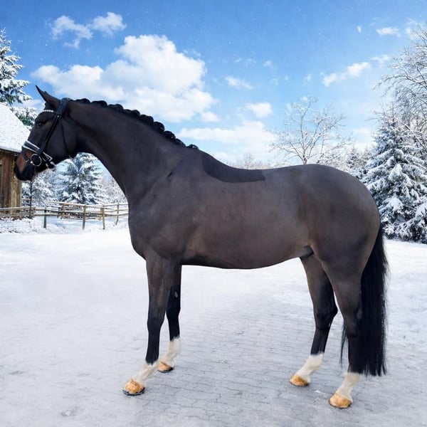 Caballo de 6 años, de Daily Diamond, con licencia de doma clásica y en buen estado de entrenamiento.