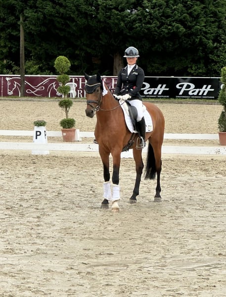 We present an exceptional 5-year-old dressage horse, distinguished by its impressive achievements in dressage competitions. The horse has consistently placed in nearly every test and demonstrates absolute reliability and confidence at shows. In handling, he is extremely gentle and well-behaved. He behaves impeccably with the farrier and is completely trouble-free when loading onto the trailer. The horse always works with motivation, making him the perfect partner for competitions as well as for daily riding. If interested, we are happy to provide a competition video to give you an even better impression of his abilities. Please feel free to contact me for further information.