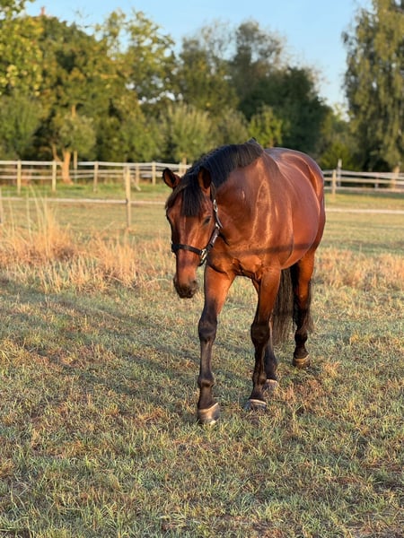 In vendita c'è un impressionante castrone, nato nel 2019. Questa bellezza baia scura colpisce non solo per il suo aspetto affascinante, ma anche per le sue eccellenti caratteristiche di dressage. Questo talentuoso castrone si mostra sempre pronto a dare il massimo nel rettangolo e è adatto per cavalieri di concorso ambiziosi che cavalcano a livello sicuro L/M. Questo castrone non è solo un compagno sportivo, ma anche un vero e proprio colpo d'occhio nel box. È molto tranquillo da gestire e ama la varietà nella vita quotidiana, sia che si tratti di passeggiate, lavoro in longhina, allenamenti di dressage o anche di un concorso. Può essere trovato su Rimondo sotto Danzadur H. Ha vinto in dressage di livello L. Viene venduto solo se si trova la giusta corrispondenza e se riceve una casa fantastica.