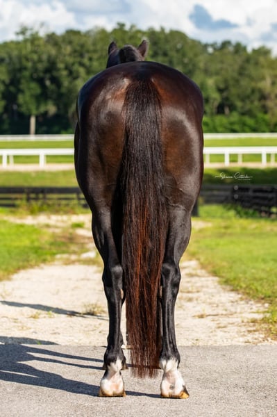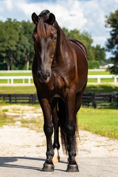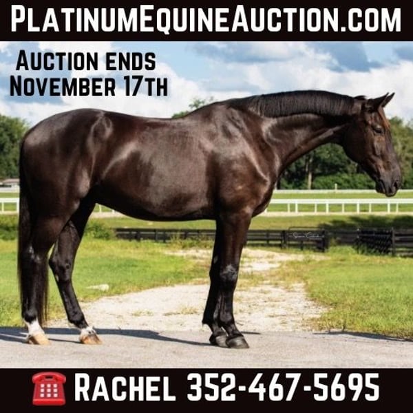 ONLINE AUCTION Place your bids at www.PlatinumEquineAuction.com Starting Bid $3500 Auction ends November 17th, 2024 Need a new saddle? Check out White Rock Saddles on our website or Facebook! Fancy young Warmblood investment horse! Dressage, H/J, or eventing. Lord Ferragamo x Ferro x Formateur Earl Grey, aka Early, is a 2019 black bay Oldenburg gelding standing 16.2h sticked barefoot. He won 1st place at 2020 Young Horse qualifiers, was Reserve Champion at USDFBC 2021 Regional Finals with a 78.7% and a 79% from both judges and showed Materiale dressage in 2023 scoring 76.2%. Early schools training level dressage, trail rides, and has started over fences. He loves xc schooling and has jumped ditches, banks, coops, logs, and more! His sweet puppy dog personality, stunning looks, and eye-catching fancy Warmblood movement make him a barn favorite. He has been brought along slowly and correctly with an emphasis on the basics and longterm soundness. Early is a barefoot easy keeper and is up-to-date on shots, Coggins, deworming, sheath cleaning, hoof trimming, and floating. Current pre-purchase exam and CLEAN full set of X-rays on file (front feet, hocks, stifles, and back) Watch his video and call Rachel with Show Me Sport Horses 352-467-5695. Located in Ocala, FL. ONLINE AUCTION Place your bids at www.PlatinumEquineAuction.com Starting Bid $3500 Auction ends November 17th, 2024 Need a new saddle? Check out White Rock Saddles on our website or Facebook!