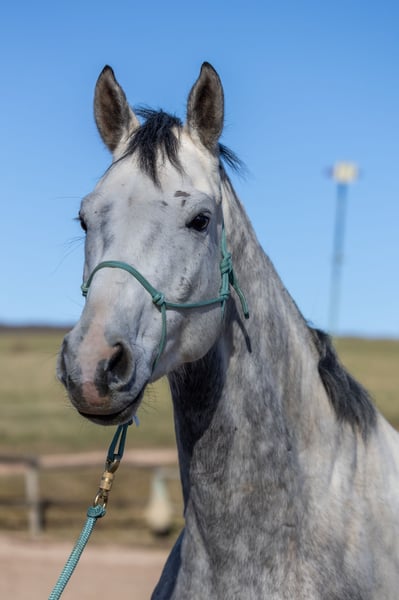 Bentador was taken over by us in January 2025 from the Oldenburg breeders Antje and Konstantin Stahl. He had previously been in dressage training for several months. He is a sweet, athletic boy with an incredibly quick understanding and beautiful movements. With us, Benny loads into the trailer without any issues, picks up his hooves willingly, is familiar with hoof boots, and can stand tied for longer periods. However, we are always cautious with terms like "blacksmith and loading friendly," as this often depends on the individual horse's relationship with the person handling them. In the field, Benny is brave, motivated, and curious. In the riding arena, he offers an incredible amount on the ground – jumping, flying changes, lateral movements, and transitions are a breeze for him when the person at the other end of the rope is friendly and fair and can manage their own energy well. Even under saddle, he shows his great potential in all three gaits – when the relationship with his human is right and they can provide him with security and relaxation. Bentador is the perfect horse for an ambitious rider with good horsemanship skills who is eager to develop further with him both on the ground and while riding. He closely bonds with his person, valuing relationship, reliability, and trust, but he also appreciates play, creativity, and humor with his human. In our herd, he is very self-confident and enjoys being able to socialize after years as a stallion (until October 2024). Bentador will be placed in the hands of someone experienced in horsemanship and will only be sold for open stable and herd living. If you are interested in Benny, we hope you will take the time to get to know him calmly with us. Included in the price is a voucher for participation in two camps with us (dates can be found on our website www.birkenhof-heil.de).