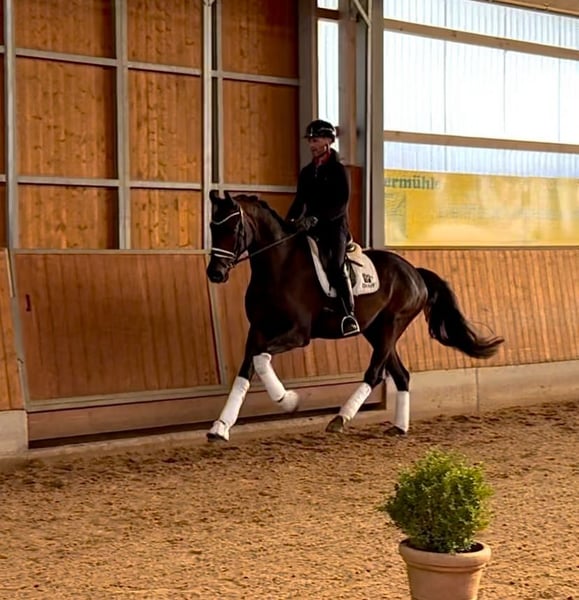 Ferdinand is a 6-year-old gelding by For Romance x Dimaggio. He has already been successfully placed in dressage horse tests of classes A and L. He impresses not only with his top-class movement potential but also with his high willingness to work and his pleasant character in daily handling. Particularly noteworthy is his very good trot with a lot of expression. All three gaits possess a natural swing, an actively working hindquarters, and a generous stride. Ferdinand has a lot of talent for collection and the first half steps - ideal prerequisites for further training towards the higher classes. He works motivatedly, has a balanced character, is easy to ride, and is always eager to please his rider. An ideal young horse for ambitious riders looking for a partner with perspective.