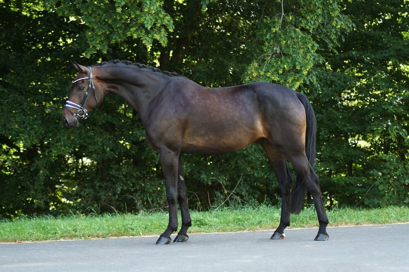 Ferdinand è un castrone di 6 anni, figlio di For Romance x Dimaggio. Ha già ottenuto buoni risultati in concorsi di dressage di livello A e L. Si distingue non solo per il suo eccellente potenziale di movimento, ma anche per la sua grande disponibilità al lavoro e il carattere piacevole nel quotidiano. Particolarmente notevole è il suo trotto molto espressivo. Tutti i suoi andamenti naturali presentano un ritmo fluido, una schiena attiva e un ampio spazio di movimento. Ferdinand possiede molto talento per la raccolta e i primi mezzi passaggi, caratteristiche ideali per una futura formazione verso le categorie più alte. Lavora con motivazione, ha un carattere equilibrato, è facile da montare e si impegna sempre per compiacere il suo cavaliere. Un giovane cavallo ideale per cavalieri ambiziosi che cercano un partner con prospettive di crescita.