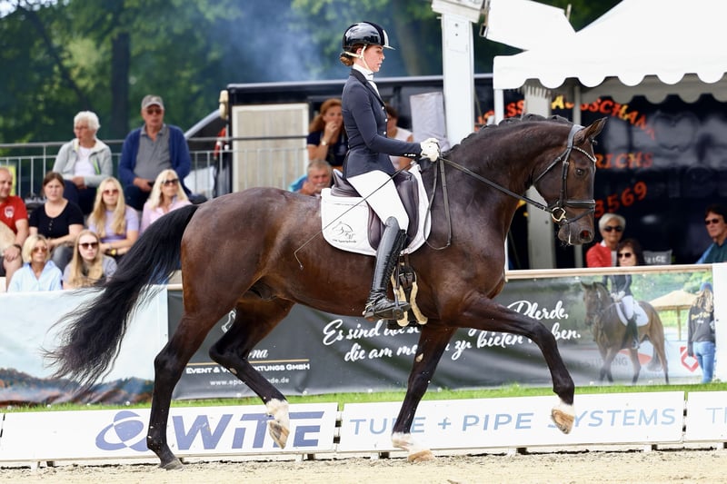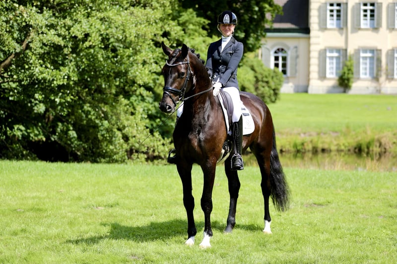 Dear interested buyers, For questions or to schedule an appointment, please send us a WhatsApp or an email. You can reach us by phone on weekdays, preferably around noon. If this is not possible, just send us a message and we will get back to you. We look forward to hearing from you! "Sille" is an absolute charmer, possessing outstanding quality and an incredible work ethic and rideability that every rider desires. With his size, he moves very intelligently and tactically, learning new tasks quickly and with enjoyment. He also behaves exemplary at competitions and has already placed multiple times against strong competition in riding horse tests, dressage horse A, and dressage horse L in the top ranks. He performs lessons such as canter on the outside, half-passes, and canter-walk transitions very reliably. He also executes traverses and flying changes beautifully. At home, he is exclusively ridden by an amateur. He simply wants to do everything right and is also a true friend and very affectionate partner – cuddling and being close is just part of who he is! Since he is very honest, a less experienced rider can also handle him well. He loads easily by himself and is very well-behaved with the farrier. A horse for high-level sport and ambitious riders!
