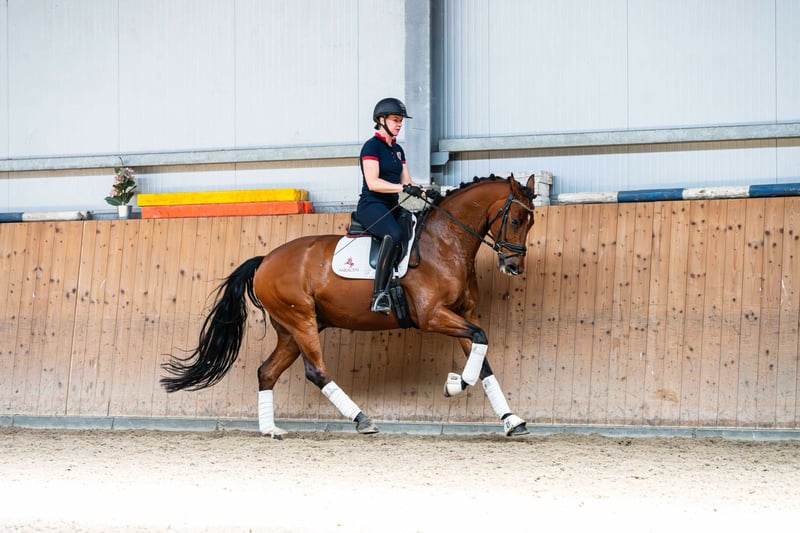 7-jähriger Wallach mit hervorragenden drei Grundgangarten. Er ist ein sehr elegantes Pferd, komfortabel und bietet viel Freude und Zufriedenheit beim Reiten. Er lernt schnell neue Dinge. Er ist auf Juniorenniveau ausgebildet und kann Arbeits-Pirouetten machen. Er eignet sich hervorragend für einen Junior mit guten Perspektiven für zukünftige Starts in höheren Klassen. Im Umgang ist er ein sehr freundliches und kontaktfreudiges Pferd, außerdem steht er problemlos beim Schmied, ist brav im Transport und auf der Weide. Er hat keine schlechten Angewohnheiten oder unerwünschtes Verhalten.