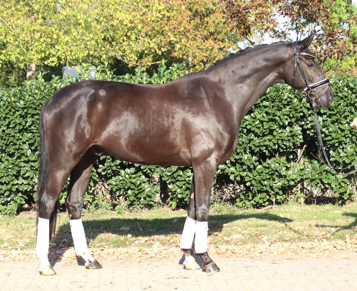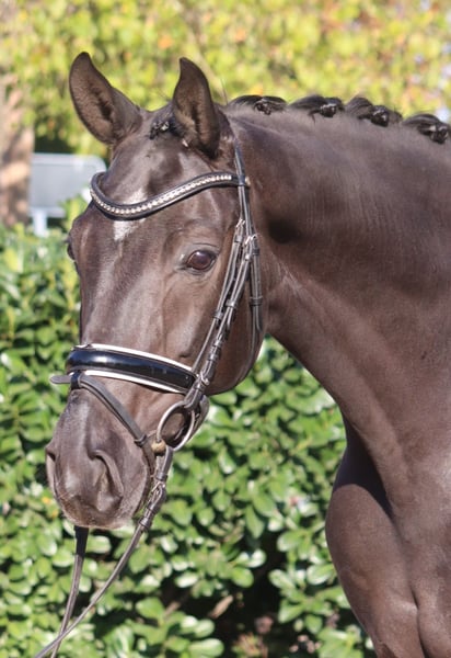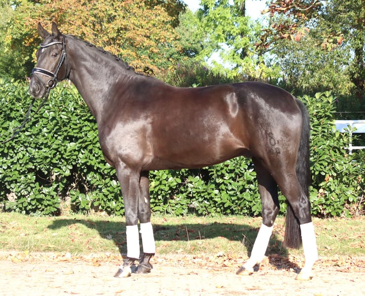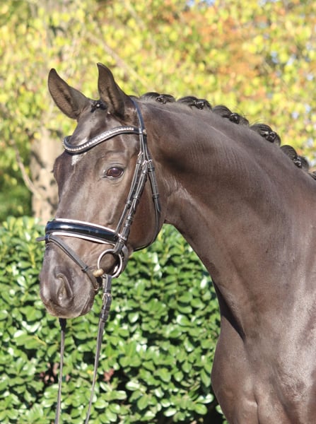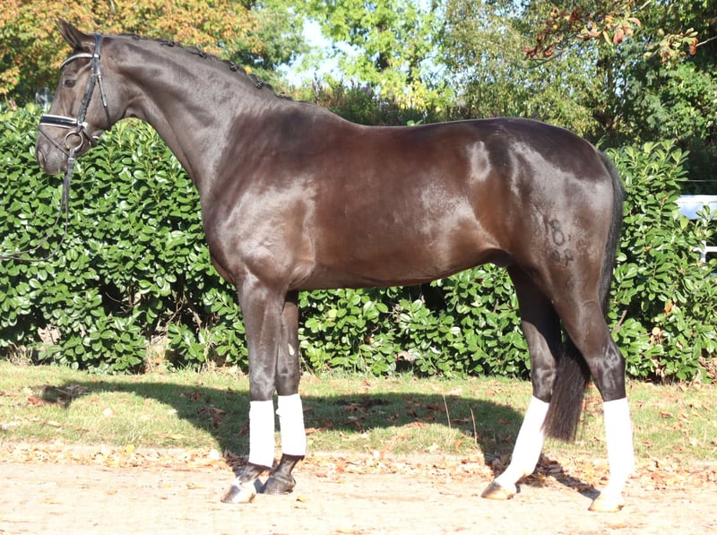 Charming 8-year-old gelding by Fürst Romancier out of Diamond Hit, with three very good basic gaits. He has been ridden so far by amateur riders at L-level but shows potential for more. This handsome gelding is very well-behaved in handling and is ready to be further developed. Price plus VAT. Inquiries only by phone; emails will not be answered.