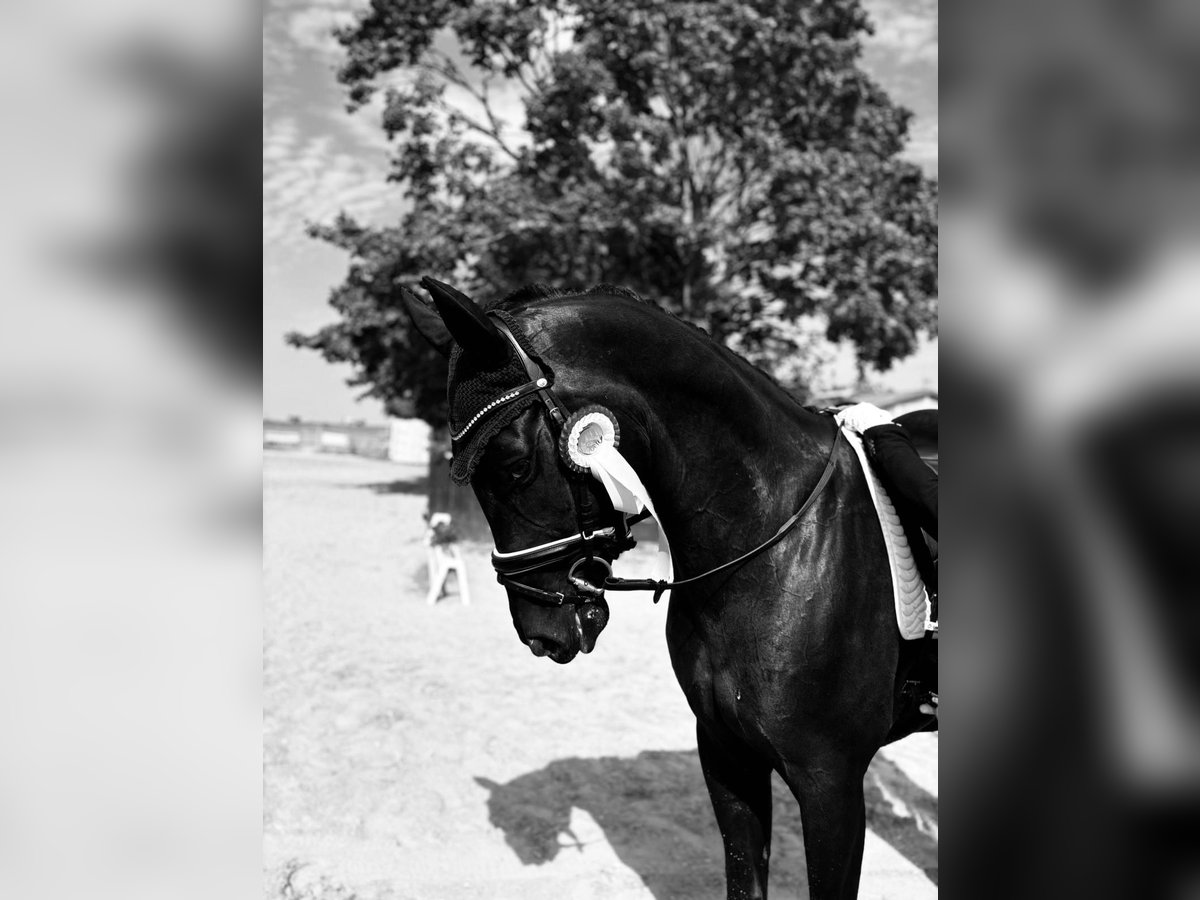 For sale is a striking 2019-born gelding with an excellent pedigree by Foundation out of Uno Don Diego, impressing both sportingly and in character. He has already achieved a 2nd place in the Dressage Young Horse class and is currently confidently competing at L-level, showing great potential for progressing toward M and S classes. 👉 His sporting career is still entirely ahead of him. The gelding is currently in training with a rider who holds a Gold Riding Badge and has been trained from the beginning by a rider with this badge—an education that clearly reflects in his looseness and correct work. Due to my pregnancy, he has not been consistently promoted lately, which has resulted in less wear and tear and gives him a particularly fresh, unspoiled outlook. 🌟 His highlights: - Three very good, elastic basic gaits - Willing to learn and performance-oriented - Absolutely sweet, honest, and uncomplicated in daily handling - Always provides his rider with a secure and positive riding experience and is very cuddly - An ideal horse for ambitious amateurs as well as for further sporting development This horse combines quality, character, and future potential—a true rough diamond with a solid foundation and plenty of room for growth.