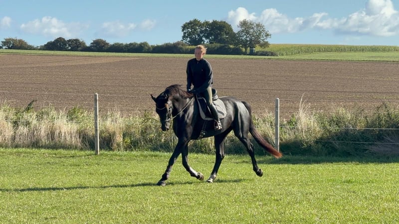 Schweren Herzens habe ich mich dazu entschieden, meinen 8-jährigen Oldenburger Wallach Silent Sanyo zu verkaufen. Sanyo ist ca. 1,75 m groß und ein absolutes Herzenspferd mit einem liebevollen Charakter. Er ist sehr verschmust, menschenbezogen und für ein Möhrchen jederzeit zu begeistern. Er besitzt volles Papier und stammt ab von Sensation x Hello Kitty. Sanyo ist ein Spätentwickler und durfte nach seiner Zeit im Beritt bei der Vorbesitzerin bei uns noch einmal ganz in Ruhe Pferd sein. Anschließend wurde er schonend und altersgerecht wieder antrainiert. Im Rahmen einer Untersuchung wurde ein Zufallsbefund Kissing Spines festgestellt. Dieser Befund bereitet ihm keinerlei Probleme. Sanyo ist vollständig belastbar und wird ganz normal gearbeitet und geritten. Gerne erkläre ich dies im persönlichen Gespräch näher. Zurzeit wird er 2–3 Mal pro Woche geritten, zusätzlich abwechslungsreich vom Boden gearbeitet und hat einen festen Ruhetag pro Woche. Im vergangenen Sommer hat Sanyo seine Freude am Springen entdeckt. Er steht hier noch am Anfang, zeigt sich jedoch sehr motiviert, mutig, ohne Scheu und mit viel Zug zum Sprung – ein Bereich, der sich definitiv weiter ausbauen lässt. Sanyo kennt bereits vieles und war auch alleine im Gelände unterwegs. Dennoch sucht er einen erfahrenen Reiter, der ihm Sicherheit gibt. Er ist niemals bösartig, kann jedoch jungpferdetypisch auch einmal einen Bocksprung machen oder unsicher reagieren, bleibt dabei aber stets gut händelbar. Im täglichen Umgang ist er ein absoluter Engel. Unarten wie Beißen oder Treten kennt er nicht, lediglich manchmal etwas ungeduldig, was sich mit zunehmender Routine immer weiter legt. Aktuell arbeiten wir intensiv an seiner Balance, da ihm diese aufgrund seines langen Körpers und seiner langen Beine noch etwas schwerfällt. Sanyo ist alle 4–6 Wochen bei der Huforthopädin und erst vor 2 Monaten osteopathisch durchgecheckt worden mit ausschließlich positivem Feedback. Er ist ein Pferd, das sich in der täglichen Arbeit sehr viel Mühe gibt, gefallen möchte und stets versucht, alles richtig zu machen. Seine Motivation und sein Wesen machen ihn unverwechselbar, er sucht lediglich nach neuen Aufgaben. Mit diesem Pferd hat man wirklich den Jackpot gewonnen. Oft denkt man sich „ach, typisch Sanyo“ – und genau diese Einzigartigkeit macht ihn so liebenswert. Beim Schmied ist er lieb, manchmal etwas ungeduldig, was sich mit der Zeit weiter bessert. Wichtig zu wissen: Sanyo hatte einen Verladevorfall, weshalb die Stange aktuell nicht problemlos geschlossen werden kann. In diesem Fall müsste er sediert werden oder es wird eine alternative Lösung gefunden. Ich wünsche mir für Sanyo einen Menschen, der sein liebes Wesen zu schätzen weiß und es nicht ausnutzt. Er soll eine feste Bezugsperson bekommen. Sanyo kennt sowohl Offenstall- als auch Boxenhaltung, schön wäre ein Zuhause mit viel Weidegang. Mit Stuten ist er nicht verträglich. Die Entscheidung fällt mir nicht leicht, und Sanyo wird ausschließlich in beste Hände abgegeben. Bei ernsthaftem Interesse meldet euch gerne und lernt diesen wunderschönen Burschen kennen. Aber Vorsicht : *Er ist ein Pferd zum Verlieben*. Falls ich etwas vergessen haben sollte, schreibt mir gerne – es gibt einfach unglaublich viel über dieses tolle Pferd zu erzählen. Probereiten ist möglich, ebenso kann er vorgeritten werden. Für Probereiten und Vorreiten wird eine Gebühr von 30 € erhoben, die bei Kauf selbstverständlich angerechnet wird.