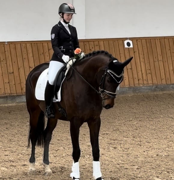 100% lovable gelding to be given to nurturing hands. 6 years old with 14-year-old E-level dressage and has competed at dressage horse A level. Currently ridden by a dressage rider of class M/S. Trained at a solid A level with some L-level exercises available. Cuddly and eager to please, but also needs to be worked. He shows a lot of potential and is ready to be further developed with an experienced rider. Can be sold with equipment: saddle, bridle, by arrangement. Contact via WhatsApp.