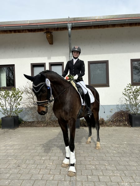 100% liebenswerter Wallach in fördernde Hände abzugeben. Zur Zeit geritten von Dressur-Reiterin Klasse M/S Ausgebildet auf solidem A-Niveau und vereinzelte L-Lektionen vorhanden. Sehr gute Arbeitseinstellung , möchte immer gefallen Falcon ist ein absoluter Schatz im Umgang, benötigt jedoch einen etwas versierten Reiter, der ihn korrekt weiter fördert. Er ist niemals böse, eignet sich aber nicht für unerfahrene oder schwache Reiter. Für Amateure ist er sehr gut geeignet, vorausgesetzt ein solides Reitniveau ab A Nicht zum Voltigieren geeignet!!! Zubehör :kann mit erworben werden: Sattel , Trense , nach Absprache. Kontakt über WhatsApp