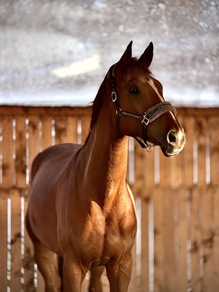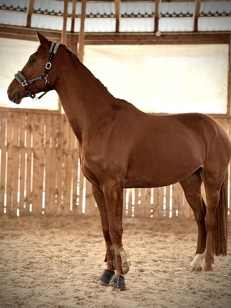 For sale: an Oldenburg stallion sired by Fürst Jazz out of Weltmeyer. Falco stands approximately 182 cm tall – he is tall but very proportionate and elegant. He has a beautiful chestnut coat and makes a strong impression. Falco is a spirited, sensitive, and very alert horse (he tends to watch attentively). At the same time, he is a horse that trusts people and builds relationships, but he requires a confident rider. Under saddle: • eager to work • responds well to aids • needs rider focus – can be watchful and reactive On the ground: • generally well-behaved • may be slightly skittish Falco is definitely suited for an advanced rider – he needs a calm, yet confident, decisive, and courageous hand. When in the right hands, he demonstrates his enormous potential. Reason for sale: Falco is a horse with great potential, but due to his size and strength, I am looking for a more experienced rider who can fully harness his capabilities. More information, photos, and videos can be sent via WhatsApp. Phone: +48 792 261 522 Possible trade for a smaller horse.