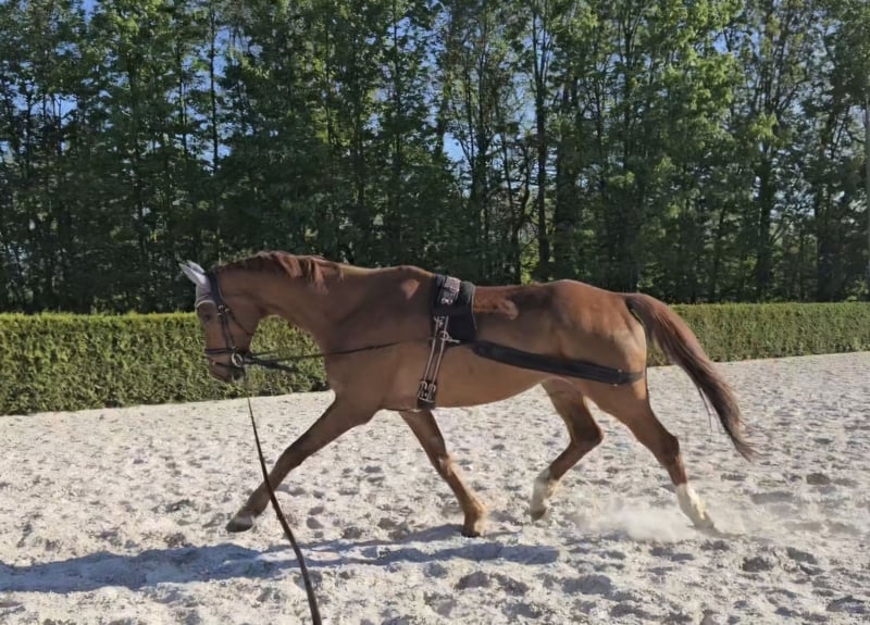 À vendre, un impressionnant hongre de dressage, qui avec ses 183 cm de hauteur, séduit à la fois par son apparence et sa qualité. Il possède une excellente lignée qui souligne ses remarquables allures et son potentiel pour le dressage. Ses mouvements sont élégants, fluides et puissants - parfaits pour le cavalier ambitieux, que ce soit dans le cadre de loisirs avancés ou dans le sport de dressage. Si vous êtes à la recherche d'un cheval talentueux, amical et bien éduqué qui vous accompagnera sur votre chemin, ce hongre pourrait être exactement ce qu'il vous faut. Parfois, Fidelio a un cœur de lapin, mais pour son humain, il est prêt à tout affronter. Les leçons lui viennent naturellement. Il connaît les traversées, les préparations pour la pirouette de travail, les demi-tours et bien d'autres choses encore. Actuellement, il participe également à quelques cours dans mon école d'équitation avec des enfants et a déjà été impliqué dans des séances de voltige. Il a brillamment maîtrisé tout cela. Je souhaite pour lui quelqu'un qui écoute et encourage, car il est trop précieux pour l'école d'équitation. Pas un cheval pour débutants / pas adapté aux cavaliers extrêmement anxieux. Pas de vices, mais avec un bon tempérament. Pour toute question ou si vous êtes intéressé par un essai, je suis à votre disposition.
