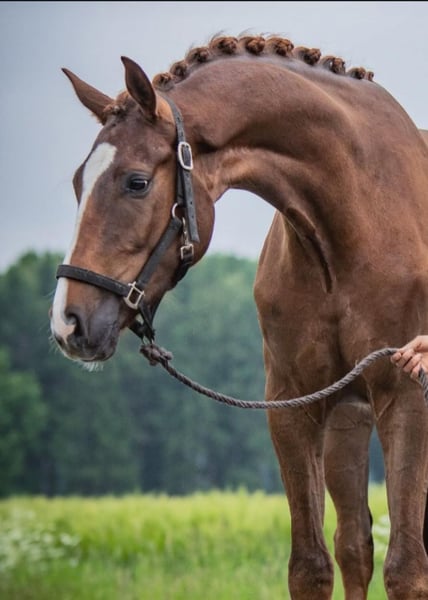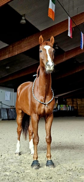 For sale is an impressive dressage gelding, who, with his height of 183 cm, captivates both through his appearance and his quality. He has a great pedigree that highlights his excellent movement patterns and his potential for dressage. His movements are elegant, flowing, and powerful - perfect for the ambitious rider, whether in the higher leisure sector or dressage sport. If you are looking for a talented, friendly, and well-educated horse that will accompany you on your journey, this gelding could be just right for you. Sometimes Fidelio has a timid heart, but for his person, he would go through thick and thin. Lessons come easily to him. He knows traverses, approaches to working pirouettes, half-steps, and much more. Currently, he is also participating in a few lessons in my riding school with children and has even been involved in vaulting. He has mastered all of this with flying colors. I wish for him someone who listens and supports him, as he is too good for school operations. Not a beginner's horse / not suitable for extremely anxious riders. No vices, but equipped with a pleasant go. If you have any further questions or are interested in a trial ride, I am happy to assist.