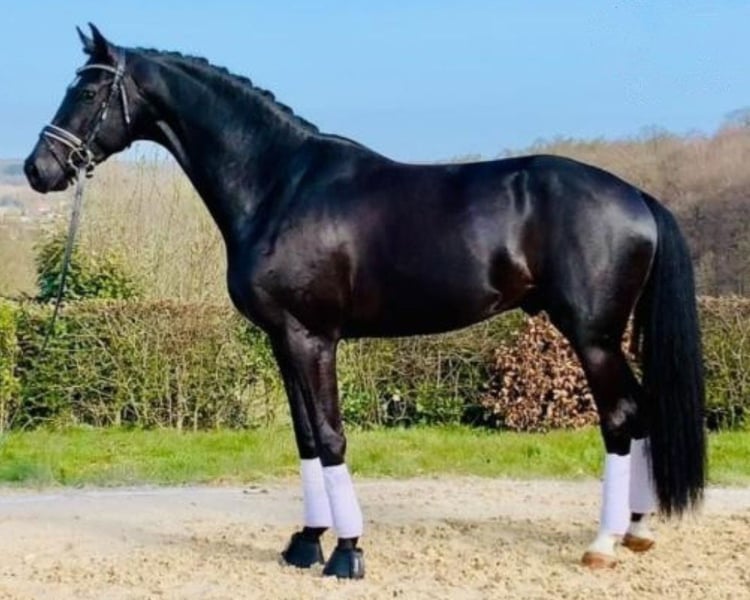 Dantino impressionne par son élégance exceptionnelle, sa expressivité et sa présence – un véritable point d'attraction dans le carré d’école. Depuis 12 mois, il est en carrière professionnelle chez Dennis Meschke, au centre équestre olympique de Munich, où il est spécifiquement préparé pour le niveau S. Sa légèreté impressionnante, son encolure fine et son talent naturel pour la piaffer et la passage en font un cheval très intéressant pour le cavalier de dressage exigeant. Grâce à ses mouvements souples et à sa grande motivation, Dantino enthousiasme aussi bien le cavalier que le public. Il maîtrise avec aisance les travers, les changements de galop volés et les pirouettes en travail, en faisant preuve d’une grande disponibilité et de calme. Avec sa combinaison exceptionnelle de talent, de dressabilité, de caractère et d’éclat, Dantino est le cheval idéal pour un cavalier ambitieux qui souhaite le guider avec finesse vers le Grand Prix – un véritable cheval de rêve pour les exigences les plus élevées.