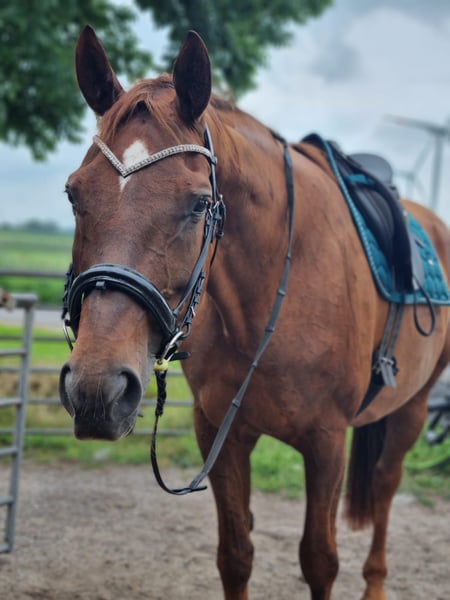 Bonjour, Je m'appelle Florina, j'ai 15 ans, je mesure 1,69 m et je cherche un nouveau foyer car ma propriétaire souhaite arrêter le sport équestre. Je suis très bien dressée et facile à manipuler en carrière. En extérieur, il me manque encore un peu d'expérience. Je connais le transport en van et je suis sage chez le maréchal-ferrant. Si tu souhaites faire ma connaissance, n'hésite pas à nous envoyer un message.