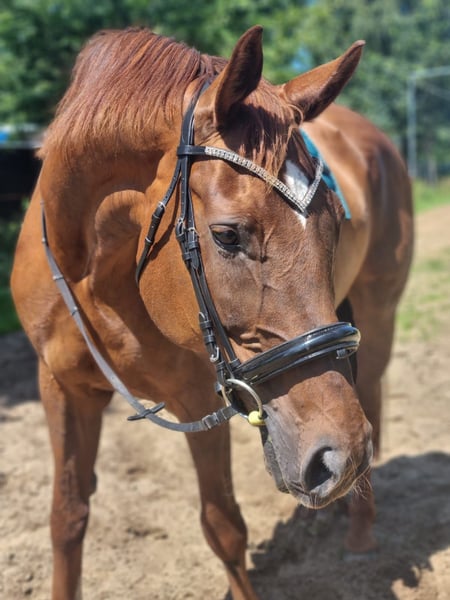 Good day, My name is Florina, I am 15 years old, 1.69 meters tall, and I am looking for a new home because my owner wants to give up riding. I am very well-behaved and easy to handle in the arena. I still need some experience when riding out in the field. I am familiar with loading onto a trailer and behave well with the farrier. If you would like to get to know me, please send us a message.