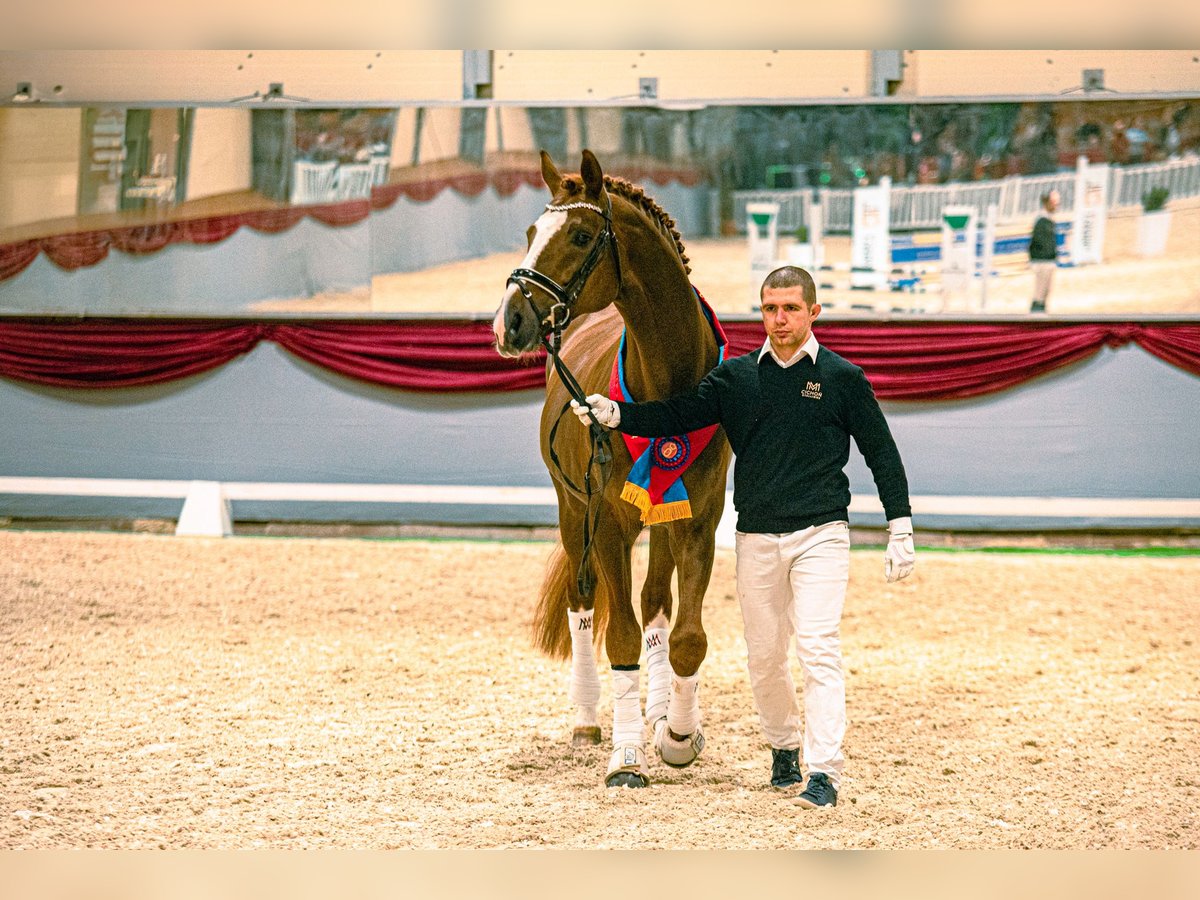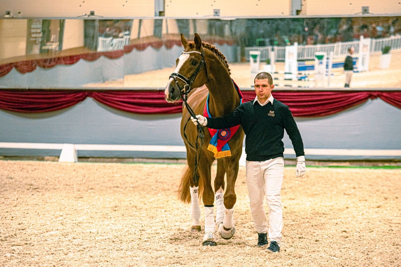 Don Deluxe began his extraordinary story with a victory at the Oldenburg Körung in 2013, after which he was purchased at auction by Andreas Helgstrand for the sum of 910,000 euros (!) and included in the roster of stallions at the Danish station Helgstrand Dressage, under whose colors he won the 35-day DWB stallion test in 2015. His further sporting career was hindered by a serious injury; however, he remained an active and sought-after stallion, leaving numerous offspring, primarily in Denmark and Germany, and for several years has had a significant impact on Polish dressage horse breeding. Don Deluxe is the son of the legendary De Niro – a stallion that has been at the top of the WBFSH ranking for years, leaving behind over 70 recognized stallions in breeding and an innumerable number of outstanding horses in sport, 7 of which competed at the Olympics in London. His dam is a daughter of the three-time Oldenburg Championship winner, the stallion Rosario, who in turn is a son of the famous Rubinstein, one of the most important stallions in dressage horse breeding. His daughter, Rosaria Deluxe EM (out of Fürst Romancier), became the Super Champion of the Open Championship of Noble Breed Foals, where with scores of 10 points for type and 9 points for movement, she dominated the largest group of 33 foals with dressage pedigrees at Polish breeding exhibitions, and subsequently found buyers at the Cichoń Foals Auction, achieving a price of 12,000 euros. This was another excellent sale of a foal by Don Deluxe – in 2021, one of the highest auction prices (13,500 euros) was achieved by the filly Dauphine Varmeto. A few weeks later, Si Donna Deluxe (out of Insider), ridden by Karola Mazurek, won the gold medal at the Polish Championships for 4-year-old Young Horses, achieving a final score of 81.2%, including 8.4 points for walk, 8 points for trot, and 8.2 points for submission and perspective. This marks the second consecutive year that offspring of Don Deluxe have stood on the podium at the MPMK – in 2022, the bronze medal was awarded to the gelding All Deluxe (out of Romantiker), ridden by Anna Skrzeszewska-Walter. In the USA, Don Perignon (out of Kansas C) has achieved success at the small tour level, while in Germany, 64 sport horses and 28 breeding mares have been registered so far, of which two have received state premiums. Don Deluxe has also sired 5 recognized sons!