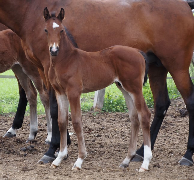 This typy and dual-purpose stallion candidate comes via embryo transfer from an absolute successful pairing! All full siblings impress with an incredible amount of ability and caution at the jump, as well as three very good gaits, making them suitable for dressage sports. His full brother is completing the HLP this year and is expecting his first offspring next year (see other ads). More full siblings are expected in the coming weeks. The dam's sire "De Kooning," despite a rather limited breeding use, has already produced Grand Prix horses like Dalou Shan and carries a lot of Holsteiner blood on the maternal side as a direct son of the unique Donnerhall. The sire Cafe au lait, champion stallion of his licensing, HLP winner, and BuCha finalist, was himself successful in the heavy classes and has made a name for himself in recent years as a dual-purpose sire with top offspring. Thus, Cafe's Casimir (Cafe au lait x Calido x Grannus) became the celebrated top price of the Oldenburg Elite Auction, is already a series winner in S-level dressage at a young age, and has been successful internationally in Intermediaire I. The mare Kasselmann's Cafe's Caletta (Cafe au lait x Calato) is also already placed in S-level dressage and has won internationally at Grand Prix. Cafe's Matts (Cafe au lait x Don Frederico) was the second most expensive dressage horse at the Oldenburg Summer Mixed Sales. Other young horses from jumping-oriented dams have already been placed multiple times in dressage horse tests from A to M and are remarkably strong-moving and clear-headed. That the Cafe au lait offspring impress in show jumping up to the heavy class is beyond question, as for example from our breeding: Cafe's Champus: licensed, vice-world champion of young horses Cafe Junior: licensed, internationally successful in Saudi Arabia Cafe's Columbo: licensed and sport successful in France Cafe's Don Rubin: licensed, at 4 years old the youngest horse to win bronze at the Dobrocker Deister Championship Stationed at Paul Schockemöhle, Cafe au lait has already sired several internationally successful show jumping horses, including "Royce," who won the FEI CSI5* $500,000 Rolex Grand Prix Wellington. Cafe au lait himself was a Bundeschampionat finalist under Philipp Weishaupt and has been successful up to S*** show jumping, but is also equipped with three spectacular gaits and has been trained to S level in dressage. Our foals receive daily mineral feed and foal starter, regular EQUISTRO Haemolytan and Ipaligo Foal, deworming, and farrier care are of course also standard. The mares also receive special mare feed throughout the entire pregnancy, daily juice feed and linseed oil, as well as hay ad libitum. Thus, our offspring is always in the best health condition. Further foals and young horses from our own breeding are available upon request. There are also always some pregnant broodmares for sale. Video inquiries, etc., are only possible in advance via WhatsApp!