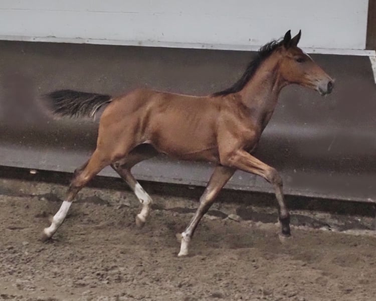 Just as promising as his full brother from last year is this chic, colorful stallion offspring with a clear double pedigree. Both his sire Cafe au lait and the dam's sire of the mare "Quattro B" stand for versatile heredity and have produced a whole series of successful dressage and show jumping horses at advanced level. Cafe au lait himself was successful up to advanced (S***) level show jumping, but also has three spectacular gaits and has been trained to advanced (S) level dressage. Full brother to Cody (Bundeschampion of six-year-old show jumpers 2002, also Pferdezucht Kuhlmann) and himself a narrowly beaten Bundeschampionat finalist under Philipp Weishaupt. Stationed with Paul Schockemöhle, he has already sired a number of internationally successful show jumpers, including "Royce" (Cafe au lait x Grandilot), victorious in the FEI CSI5* $500,000 Rolex Grand Prix Wellington. Furthermore, the licensed stallions Cafe Junior (Cafe au lait x Silvio I), internationally successful in Saudi Arabia, Chester (Cafe au lait x Orlando van de Heffinck) and Cafe's Champus (Cafe au lait x Calido I, Vice World Champion of Young Horses under Rene Tebbel). The most recently licensed stallions are Cafe's Columbo (Cafe au lait x Belstaff), successful in France, and Cafe's Don Rubi (Cafe au lait x Donnerhall), stationed with us. Cafe's Casimir" (Cafe au lait x Calido x Grannus) was the celebrated top price at the Oldenburg Elite Auction, was a serial winner in elementary and medium level dressage horses at a young age, was a serial winner again in his first advanced (S) level dressage competitions at the age of 7, and is now a winner in S** and CDI3* FEI Intermediaire I. Cafe's Caletta (Cafe au lait x Calato) currently winning advanced (S**) and advanced (S***) level dressage under Bianca Kasselmann. Cafe's Matts (Cafe au lait x Don Frederico) was the second most expensive dressage horse at the Oldenburg Summer Mixed Sales. Other young horses out of jumping-oriented dams have already placed several times in tests for young dressage horses from novice to medium level and are remarkably strong-moving and clear-headed. Accordingly, all roads are open to this great colt! Our foals receive daily mineral feed and foal starter, regular EQUISTRO Haemolytan and Ipaligo Foal, worming and a farrier are also a matter of course. The dams also receive special mare feed throughout their pregnancy, daily juice feed and linseed oil, as well as hay ad libitum. This ensures that our offspring are always in the best of health! Video requests etc. in advance only possible via WhatsApp. More foals and offspring from our own breeding on request, some of them can be found under the other ads.