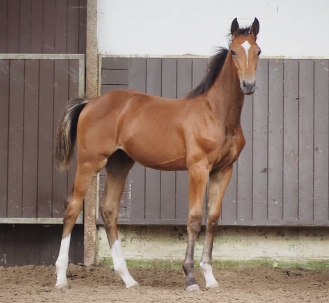 Net zo veelbelovend als zijn volle broer van vorig jaar is deze chique, kleurrijke hengst-nakomeling met een duidelijke dubbele afstamming. Zowel zijn vader Cafe au lait als de moedersvader van de merrie "Quattro B" staan voor veelzijdige vererving en hebben een hele reeks succesvolle dressuur- en springpaarden op gevorderd niveau voortgebracht. Cafe au lait was zelf succesvol tot en met gevorderd (S***) niveau springen, maar heeft ook drie spectaculaire gangen en is opgeleid tot en met gevorderd (S) niveau dressuur. Volle broer van Cody (2002 Bundeschampion van zesjarige springpaarden, ook Pferdezucht Kuhlmann) en zelf een nipt verslagen Bundeschampionat finalist onder Philipp Weishaupt. Hij is gestationeerd bij Paul Schockemöhle en heeft al een aantal internationaal succesvolle springpaarden voortgebracht, waaronder "Royce" (Cafe au lait x Grandilot), die zegevierde in de FEI CSI5* $500,000 Rolex Grand Prix Wellington. Verder de goedgekeurde hengsten Cafe Junior (Cafe au lait x Silvio I), internationaal succesvol in Saoedi-Arabië, Chester (Cafe au lait x Orlando van de Heffinck) en Cafe's Champus (Cafe au lait x Calido I, Vice Wereldkampioen Jonge Paarden onder Rene Tebbel). De meest recent goedgekeurde hengsten zijn Cafe's Columbo (Cafe au lait x Belstaff), succesvol in Frankrijk, en Cafe's Don Rubi (Cafe au lait x Donnerhall), bij ons gestationeerd. Cafe's Casimir" (Cafe au lait x Calido x Grannus) was een gevierde topprijswinnaar op de Oldenburg Elite Auction, was op jonge leeftijd seriewinnaar in de elementaire en medium dressuurpaardensport, was op 7-jarige leeftijd opnieuw seriewinnaar in zijn eerste dressuurwedstrijden op gevorderd (S) niveau, en is nu winnaar in S** en CDI3* FEI Intermediaire I. Cafe's Caletta (Cafe au lait x Calato) wint momenteel dressuurwedstrijden voor gevorderden (S**) en vergevorderden (S***) onder Bianca Kasselmann. Cafe's Matts (Cafe au lait x Don Frederico) was het op één na duurste dressuurpaard op de Oldenburger Summer Mixed Sales. Andere jonge paarden uit springgeoriënteerde merries hebben zich al meerdere keren geplaatst in proeven voor jonge dressuurpaarden van beginnend tot middelmatig niveau en zijn opvallend sterk bewegend en nuchter. Alle wegen liggen dus open voor dit fantastische veulen! Onze veulens krijgen dagelijks mineraalvoer en veulenstarter, regelmatig EQUISTRO Haemolytan en Ipaligo Foal, ontwormen en een hoefsmid zijn ook vanzelfsprekend. De moederdieren krijgen ook speciaal merrievoer tijdens de dracht, dagelijks sapvoer en lijnzaadolie, en hooi ad libitum. Dit zorgt ervoor dat onze nakomelingen altijd in optimale gezondheid verkeren! Videovragen etc. kunnen alleen van tevoren worden gedaan via WhatsApp. Verdere veulens en jonge paarden uit ons eigen fokprogramma op aanvraag, sommige zijn te vinden onder de andere advertenties.