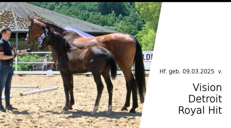 For sale is a dynamic colt from the top sire Vision. Born on March 9, 2025, he will soon be ready for a lovely new home. The foal is halter-trained, dewormed, and regularly sees the farrier. Selling directly from the breeder. At the Oldenburg foal show, the foal presented itself with a great movement pattern. His father Vision (2019) successfully completed his 50-day test in Adelheidsdorf with an overall score of 8.15 and is already victorious up to Dressage Horses L level. If interested, please feel free to contact us at 01752485664.