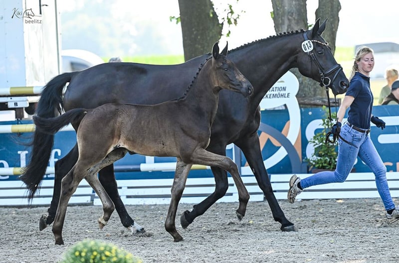 Wir bieten hiermit unser typvolles und bewegungsstarkes Hengstfohlen von Escanto PS - Fürst Wilhelm geboren am 08.05.2025, zum Verkauf an. Dieses charmante Fohlen überzeugt mit einem ausdrucksstarken Auftreten, einem dynamischen, elastischen Bewegungsablauf und einem Charakter, der jeden Tag Freude bereitet. Er präsentiert sich neugierig, menschenbezogen und klar im Kopf – ein echtes Verlassfohlen mit Perspektive. Abstammung mit internationalem Format: Der Vater Escanto PS zählt zu den vielversprechendsten Nachwuchshengsten seiner Generation. Unter Brandi Roenick (USA) sicherte er sich den Titel des Bundeschampions der vierjährigen Hengste mit Höchstnoten für Trab, Galopp und Rittigkeit. Seine überragende Leistung gipfelte in Traumnoten bis 10,0 sowie zwei Rekorden bei den Hengstleistungsprüfungen (9,43 und 9,12). Seine ersten Fohlenjahrgänge überzeugten auf ganzer Linie – mit Schausiegern, Auktionshighlights und Finalisten beim Deutschen Fohlenchampionat. Als Oldenburger Hauptprämiensieger 2024 unterstreicht Escanto PS eindrucksvoll seine züchterische Bedeutung. Mütterlicherseits entstammt das Fohlen dem berühmten Blankenese-Stamm, einem international geschätzten Stutenstamm, aus dem bereits zahlreiche Sportpferde mit S-Erfolgen hervorgegangen sind. Ein Fohlen mit bester genetischer Grundlage, dem passenden Exterieur und der Einstellung für eine Karriere im gehobenen Dressursport – sowohl für ambitionierte Reiter als auch für Züchter.