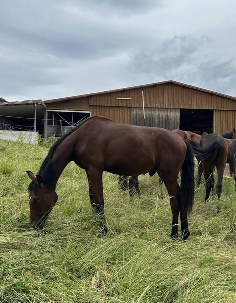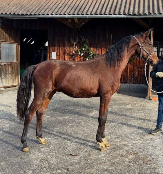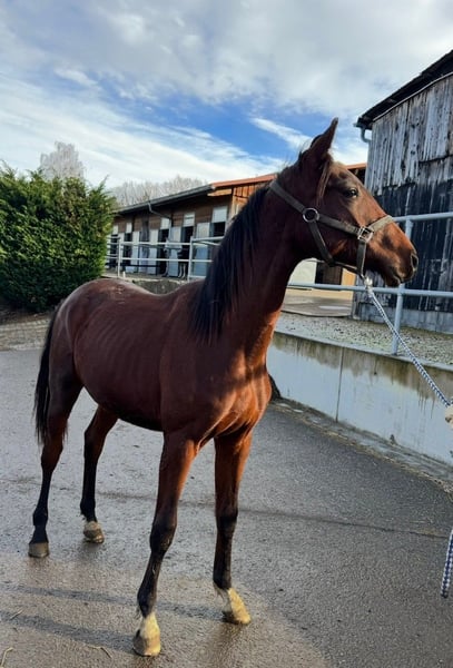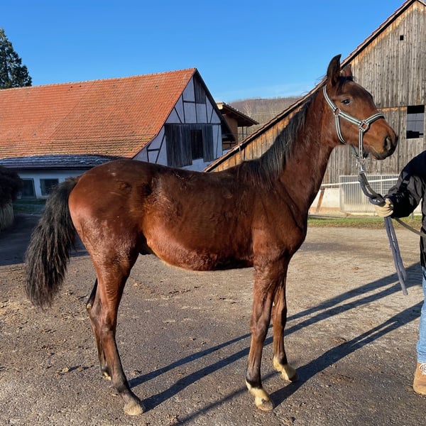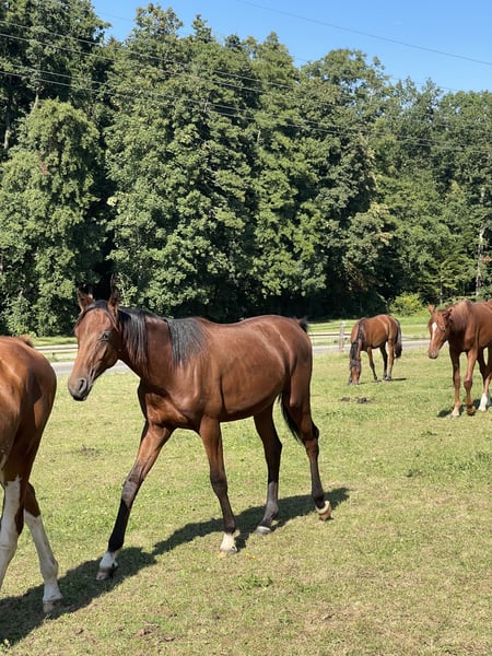 Pretty foal by For Romance and Quatermann. Papers are not yet available, they are applied for. Current pictures and videos from December 27, 2024. Very well-behaved and easy-going. He was separated from the herd for the first time for the video. It went really well.