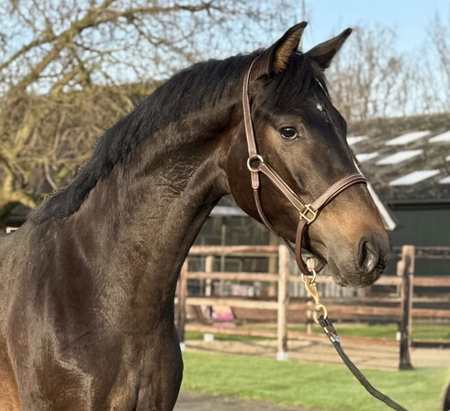 Deze jonge hengst springt gelijk in het oog met zijn moderne type en uitstraling. Hij kan fantastisch bewegen. Met veel afdruk en beentechniek beweegt hij door de baan. Hij is nog onbeleerd. Wel is hij eerlijk en braaf in omgang. Hij is gefokt uit de bekende Sondra stam. O.a. de moeder van Glock's Total US, Dante US, Mister Us en Lamborghini US en het Grand Prix dressuurpaard Zaid (v. Zonik) Bij interesse graag appen of bellen.