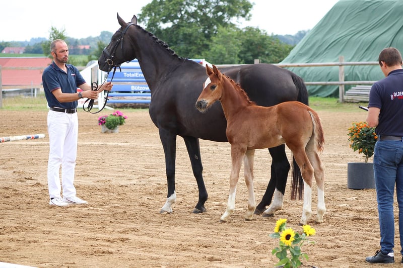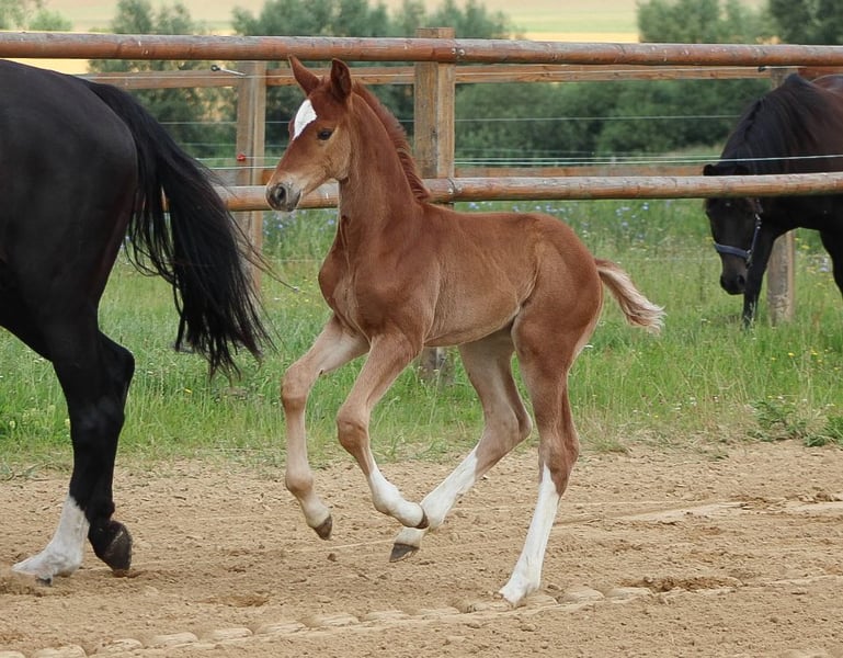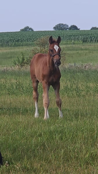 Hengstfohlen von Kjento aus einer Staatsprämienstute vom Sir Donnerhall x De Niro. Dieser tolle Nachwuchssportler besticht durch ein wunderschön aufwärts modelliertes Gebäude, viel Schulterfreiheit und ein bildschönes Gesicht. Ihre Mutter Sissy war ihrer Zeit in der Kollektion der Hannoveraner Reitpferdeauktion, Siegerin in Dressur- und Reitpferdeprüfungen, erfolgreich auf der "Herwart von der Decken Schau" und erhielt die Staatsprämie. Sie hat einen Charakter aus Gold und dient bei uns neben der Zucht als Lehrpferd für den Nachwuchs und Lebensversicherung für unsichere Reiter. Ihren tollen Charakter, Reitkomfort und Qualität für alles geforderte im Viereck gibt Sissy ihren Nachkommen mit. Diese können mit Siegen in Dressurpferdeprügungen und Prämierungen als Fohlen glänzen. Sichern Sie sich dieses tolle Fohlen als großartige Offerte für den Dressursport oder perspektivisch für Zucht. "Kjeld" ist aufgeweckt, mutig und hat ein ausgeglichenes Wesen. Er ist menschenbezogen und gut sozialisiert. Alle Fohlen wachsen bei uns mit Familienanschluss auf, kennen Landtechnik, Hunde, Ziegen, Katzen, stehen auf riesigen Weiden im Herdenverband. Inzahlungnahme, Tausch oder Ratenzahlung kommt nicht in Frage. Direkt vom Züchter Standort 17166, MV