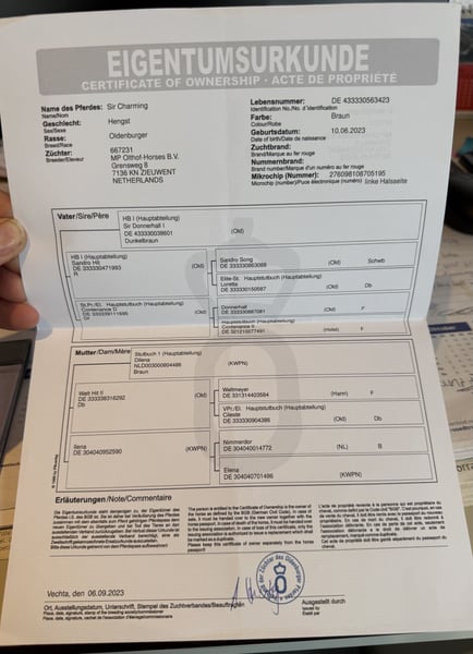 Joven caballo de doma de 3 años, hijo de Sir Donnerhall