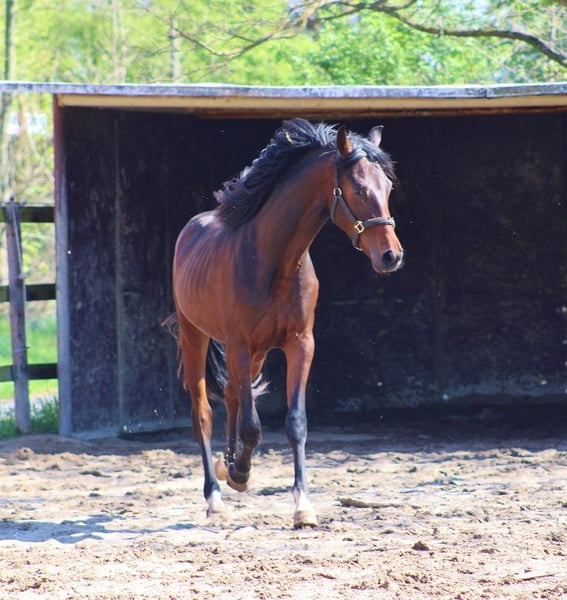 Prześliczny, dwulatek oldenburski ogierek z 2023 roku, po VIVA GOLD / Ron Rubin / Diamond Hit, posiadający wszystkie atuty, aby w przyszłości osiągać sukcesy na najwyższym poziomie amatorskiego sportu. Ogierek jest bardzo elegancki w typie, z doskonałym ruchem. Z pewnością stanie się małym „magnesem” na uwagę. Już teraz wyróżnia się świetnym chodem, elastycznym galopem i pięknym, lekko unoszącym się w górę kłusem, mimo że wciąż jest w fazie intensywnego rozwoju. Film na YouTube: https://www.youtube.com/watch?v=5FH_xAvU59 Dla amatorów to również małe marzenie, ponieważ jest absolutnie spokojny i zrównoważony. Na razie przebywa w stadzie ogierów, co jest naturalne na jego wieku. Idealny do własnego wykształcenia, doskonały dla amatorów o wysokich wymaganiach dotyczących charakteru, rzutkości i jakości ruchu. Naprawdę uroczy „magnes” dla tych, którzy szukają ogiera, w którym zakochają się od pierwszego wejrzenia, jeśli tylko trafi w dobre ręce!