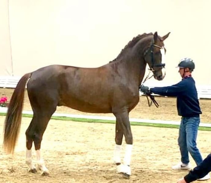 Oferowany jest przepiękny Oldenburger ciemny kasztan, 3-letni ogier z Anglo European Studbook, świeżo pod siodłem. Aktualnie ma 172 cm wzrostu. Sezuan’s Donnerhall x Don Gregory. Ekspresyjny, zawsze chętny do nauki, zmotywowany i pracowity. Już teraz solidny, łatwy do jazdy i zawsze bezproblemowy w obróbce. Jego charakter jest zrównoważony i pełen miłości, zwraca się ku ludziom. Brak nawyków negatywnych. Wyniki rentgenowskie bez zastrzeżeń. Oczywiście jest kowalsko i transportowo grzeczny. Zna dzieci, psy, koty, traktory itp. Jest przyzwyczajony zarówno do stajni otwartych w grupie, jak i do stajni boksowych. Obecnie ma dużą boks do nauki. Do tej pory jest wolny od jakichkolwiek kontuzji czy chorób. Chętnie wyślę krótkie filmiki i ważne szczegóły w wiadomości prywatnej, jednak nie zastąpi to oglądania na miejscu, poznawania i próby jazdy! Lokalizacja: Niemcy.