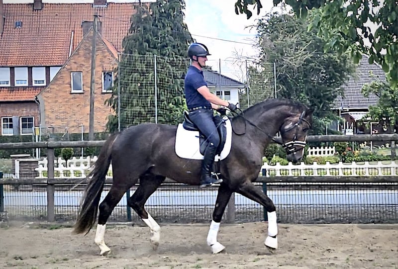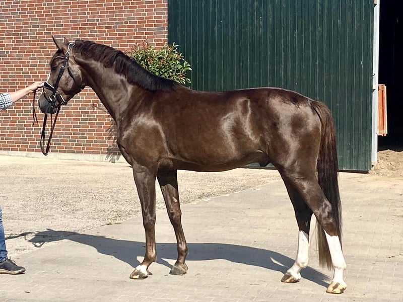 À vendre, un magnifique Oldenburger bai foncé, hongre de 3 ans, agréé par l'Anglo European Studbook et donc fraîchement monté. Actuellement, il mesure 172 cm. Sezuan’s Donnerhall x Don Gregory. Exprimant une grande présence, toujours prêt à apprendre, motivé et travailleur. Déjà solide, agréable à monter et toujours facile à manipuler. Son caractère est équilibré et affectueux, tourné vers l'homme. Pas de vices. Résultats de radiographies sans anomalies. Bien sûr, il est ferré et chargé sans problème. Il connaît les enfants, les chiens, les chats, les tracteurs, etc. Il est habitué à la vie en groupe dans un box ouvert ainsi qu'à l'écurie. Il a maintenant un box spacieux pour sa formation. Jusqu'à présent, il est exempt de toute blessure ou maladie. Je serais heureux d'envoyer de courtes vidéos et des détails importants par message privé, mais cela ne remplace pas une visite sur place, une rencontre et un essai ! Localisation : Allemagne.