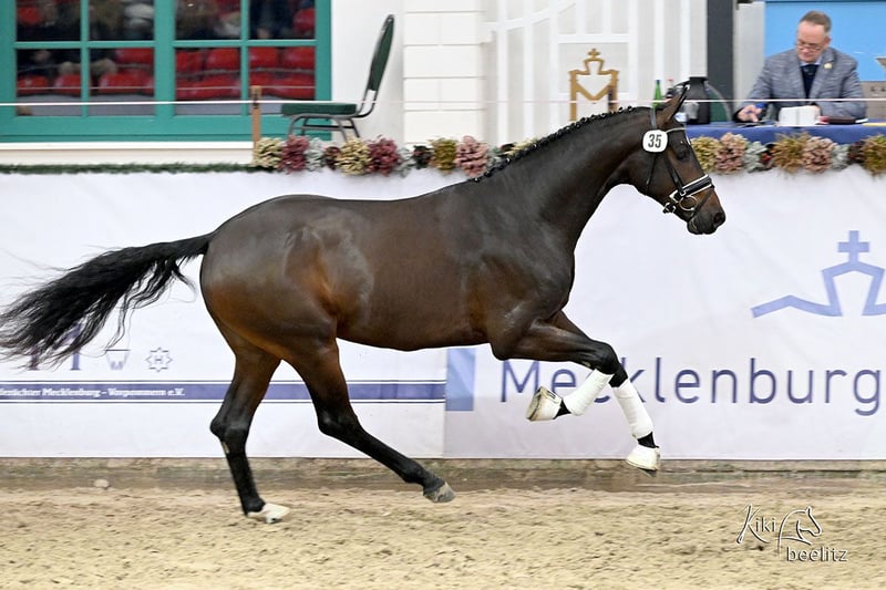 Vendo un magnifico stallone Oldenburg, nato nel 2023. Il giovane cavallo si distingue per il suo mantello elegante, di colore marrone scuro, e per un’altezza al garrese impressionante di 171 cm. È particolarmente adatto al dressage e dimostra grande talento, oltre a una promettente base di addestramento. Un partner affidabile per cavalieri ambiziosi che apprezzano qualità e carattere. Il stallone è stato già valutato come puledro con un punteggio di 88,33, classificandolo come puledro d’élite. Nel dicembre 2025 ha ottenuto la licenza di stallone in Redefin. Per ulteriori informazioni e per una visita, sono a disposizione.