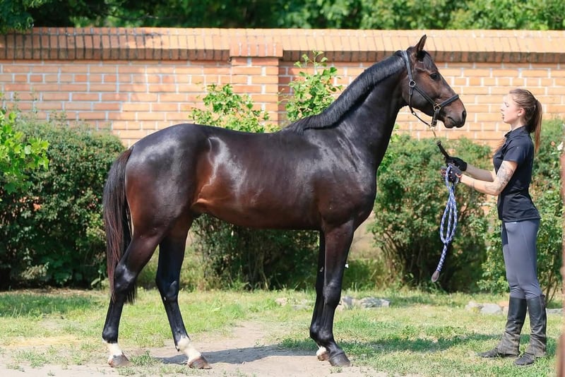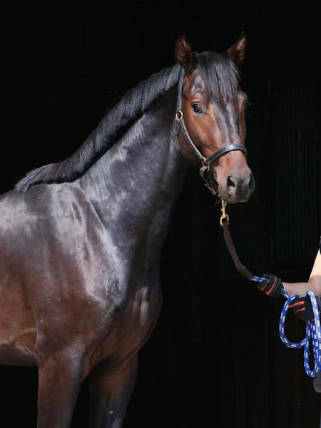 Ducat Platinum SV 2023 • Ogier • Oldenburg • Perspektywa skoków przez przeszkody Bardzo charyzmatyczny młody ogier do skoków przez przeszkody, pełen energii i ciekawości. Ducat Platinum SV emanuje pozytywną energią i sprawia, że każdy dzień jest ekscytujący i motywujący. Posiada piękną, poprawną sylwetkę, silny impuls oraz aktywny galop. W wolnych skokach już wykazuje odwagę, ostrożność, chęć do współpracy oraz dojrzały, stabilny umysł. Jego rodowód jest wyjątkowy, zawiera genetyczną siłę czterech najlepszych ogierów skokowych na świecie: Diarado – Kannan – Darco – Cornet Obolensky. Ducat Platinum SV łączy wiele wyjątkowych cech, które obiecują doskonałe wyniki w przyszłości dla konia i jeźdźca. Cena: 13 000 € Możliwość eksportu.