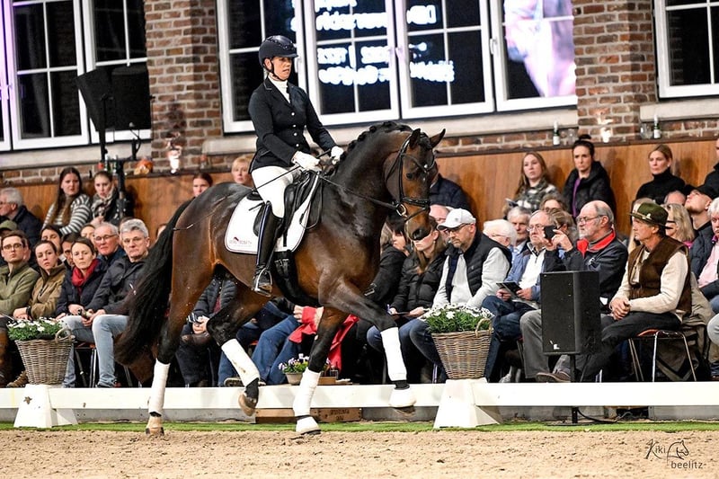 Fine Future – zakwalifikowany na Oldenburger Hengsttage 2025 Fine Future łączy wybitną genetykę głównego laureata Federer z sprawdzoną jakością matczynego linii od Stedinger, co czyni go idealnym kandydatem na przyszłego reproduktora w dyscyplinie ujeżdżenia. Dzięki najwyższej jakości ruchowi oraz zrównoważonemu i spokojnemu charakterowi, w pełni przekonał do siebie na wszystkich płaszczyznach i zasłużenie otrzymał pozytywną ocenę na kwalifikacjach Oldenburger Hengsttage 2025. Rodowód Ojciec Federer zachwyca doskonałą jakością ruchu oraz wspaniałym typem. Jego pierwsze roczniki źrebiąt wyróżniały się elegancją i typowością. Potomstwo wykazuje w ruchu dużo energii i energiczne podnoszenie nóg, co wywołało entuzjazm u hodowców i skłoniło ich do powtarzania parowania. Na Oldenburger Hengsttage 2023 został wybrany na głównego zwycięskiego ogiera. Matką ojca jest Ampère, zwycięski ogier holenderskiej kwalifikacji (KWPN) w s'Hertogenbosch. Obecnie jest ojcem ponad 60 uznanych synów, zwycięskich ogierów, zwycięskich klaczy i wysoko cenionych młodych koni aukcyjnych. Druga matka, St.Pr.St. Bold Lady, wydała na świat dwa uznane ogiery: Adoro od Ampère (pełny brat matki Bonita) oraz Quaterbold du Payrol od Quaterback. Ten ostatni w 2015 roku, z Alizée Roussel, zdobył tytuł Francuskiego Mistrza koni ujeżdżeniowych 6-letnich i brał udział w Mistrzostwach Świata młodych koni. Obecnie plasuje się w Prix St. Georg z amatorską jeźdźczynią. Adoro odnosi sukcesy w Intermediaire I z jeźdźczynią Karin Persson (USA). Trzeci ojciec, Donnerschwee, wydał na świat kilku uznanych synów oraz konie sportowe na poziomie Grand Prix, takie jak Lux-Dressage Dona Figuera OLD. Pradziadek, elitarna klacz Bold-Fantasy, jest matką słynnego zwycięskiego ogiera Oldenburger i ważnego reproduktora koni ujeżdżeniowych, Stedinger, odnoszącego sukcesy w sporcie do poziomu Intermediaire I w Australii, oraz uznanego Donninger od Donnerschwee, będącego pełnym bratem drugiej matki, St.Pr.St. Bold Lady. Bold-Fantasy ukończyła próbę dzielności klaczy z końcową oceną 8,67, z ocenami skoków 10,0 i ruchu 9,0. Jest siostrą klaczy ujeżdżeniowej Lamar H oraz półsiostrą konia wszechstronnego Just Me H od Larimar, zwycięzcy Niemiec w 2004 roku w kategorii CIC**, z jeźdźczynią Anną Christiną Rössler. Rodowód rodziny Besinda należy do najbardziej sukcesywnych i aktualnych linii hodowlanych Oldenburger. W rodzinie tej wywodzą się m.in. Tailormade Mr. Pink od De Niro, odnoszący sukcesy do poziomu Intermediaire I; zwycięski Waldsee od Waldschütz (Intermediaire I); oraz Basic Instinct od De Niro i Satchmo od Santiago, odnoszący sukcesy w Prix St. Georg. Kolejne znane konie z tej linii to Grand Prix odnosiły Andrew, Armagnac i Inschallah B, a także Tansanit (Christine Stückelberger/CH), srebrny medalista drużynowego konkursu ujeżdżenia na Igrzyskach Olimpijskich 1984, oraz konie skaczące na poziomie S/S**: Quincy od Quattro B pod Erwinem Mohnem, Dominik od Duellschütza pod Michałem Strässerem, Lucky Strike od Lucky Ghost pod Evą-Marią Lücker i Zap Forever od Zapateado pod Andreasem Buchnerem. Kolejny uznany ogier z tej linii to Casino Grande od Casino Berlin.