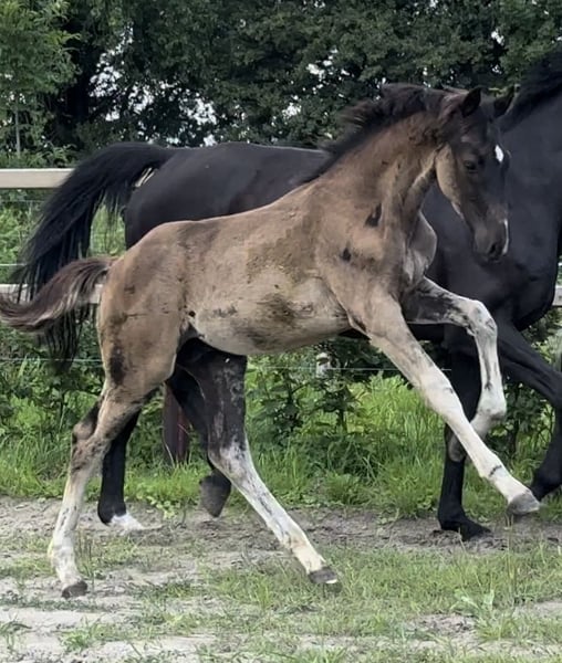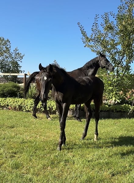 Sie möchten ein Pferd und möchten seine Historie kennen ? Sie wünschen sich ein Pferd welches Sie formen können mit Perspektive "großes Viereck" ? Sie möchten später, im großen Viereck einen bleibenden Eindruck zu hinterlassen ? Dann gönnen Sie sich dieses enorm bewegungsstarke Rapphengstfohlen ! Er ist bildschön und hat DIE Ausstrahlung die man sich wünscht, wenn man einen bleibenden Eindruck hinterlassen möchte . Sein Schritt ist enorm raumgreifend, klar im Takt geregelt mit viel Übertritt ! Seine Galoppade ist bergauf angelegt mit gutem Unterfussen und kraftvollem Abdruck ! Trabt wunderbar locker mit schöner Knieaktion und bester Schulterfreiheit ! Geschwister haben Bundeschampionatsqualifikationen 4 und 5 jährig gewonnen, sind auf dem Weg zum GP und bereits int. GP siegreich. Für weitere, jüngere Geschwister konnten ebenfalls hervorragende Dressurreiter/innen begeistern. Wir wünschen uns für ihn ebenfalls ein förderndes Zuhause mit Perspektive Förderung bis zum GP ! Wenn Sie sich angesprochen fühlen oder Sponsor einer entsprechenden Zukunftshoffnung sind, nehmen Sie bitte Kontakt auf. . . . . . . . . . . . . . . .