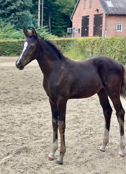 Hengstfohlen von Bon Bolero – außergewöhnlicher Typ und Talent Dieses Hengstfohlen vom beeindruckenden Vater Bon Bolero besticht durch seinen starken Typ und seine elegante Ausstrahlung. Aus einer Mutter, die bis zur S-Klasse im Dressur erfolgreich war, vereint er bewährte Leistungsgenetik mit moderner Eleganz. Er zeigt drei hervorragende Grundgangarten, stets bergauf, elastisch und im Gleichgewicht. Mit seinem mutigen und freundlichen Charakter ist er sehr angenehm im Umgang. Seine schönen Abzeichen machen ihn zu einem echten Hingucker in jeder Umgebung. Ein äußerst vielversprechendes junges Hengstfohlen für Dressur und Springen.