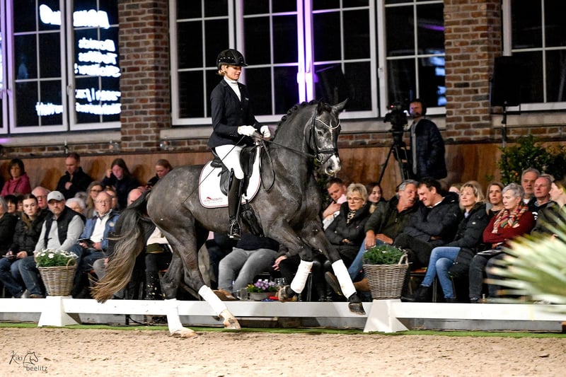 Bondolo was licensed in Redefin in 2023 and immediately impresses with his strong type, charming nature and beautiful face. His first-class basic gaits stand out in movement, whereby his very good walk is particularly noteworthy, which is characterized by enormous rhythmic clarity, suppleness and a clear overstride. Bondolo is by the successful sire Bonds, who already has numerous licensed sons and top prizes from auctions and led the FN breeding value assessment in young horse tests in 2021. Bonds himself was a serial winner in tests for young dressage horses and successful up to advanced level. His offspring are particularly appreciated for their high rideability values, excellent movement quality and strong type. Bondolo's pedigree is rounded off by the modern dressage horse makers Benicio, Sir Donnerhall and Rubinstein I. Bondolo's dam's sire Totilas was probably the most famous dressage stallion and moved people far beyond the sport of dressage. He set three world records and was three-time World Champion and two-time European Champion, as well as two-time Dutch Champion and two-time German Champion. In 2010 Totilas won the World Cup Final in 's-Hertogenbosch, Netherlands. His third dam Pia produced the advanced (S) level dressage horse Walk of Life by Wolkentanz II.