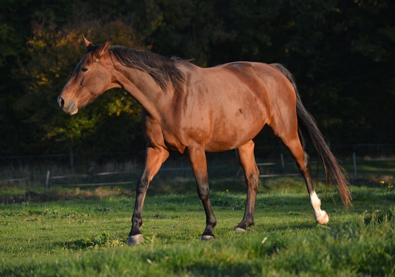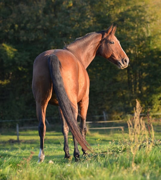 Scarlett is looking for her forever home! She is a beautiful 9-year-old Oldenburg mare with an exceptional temperament. She is very people-oriented and extremely curious about everything and everyone; as soon as she sees a person or something interesting, she stops in her tracks. She was gently trained with Natural Horsemanship at the age of 4 and is especially familiar with trail riding. She has not been ridden for some time and has generally never been heavily ridden or overworked. She is seeking a home as a leisure horse in an open stable environment. Unfortunately, Scarlett copes poorly and has a slight humpback. She stands about 165 cm at the withers. Her sire is San Amour, and her dam’s sire is Sandro. She is currently in France, near Besançon, on pasture.